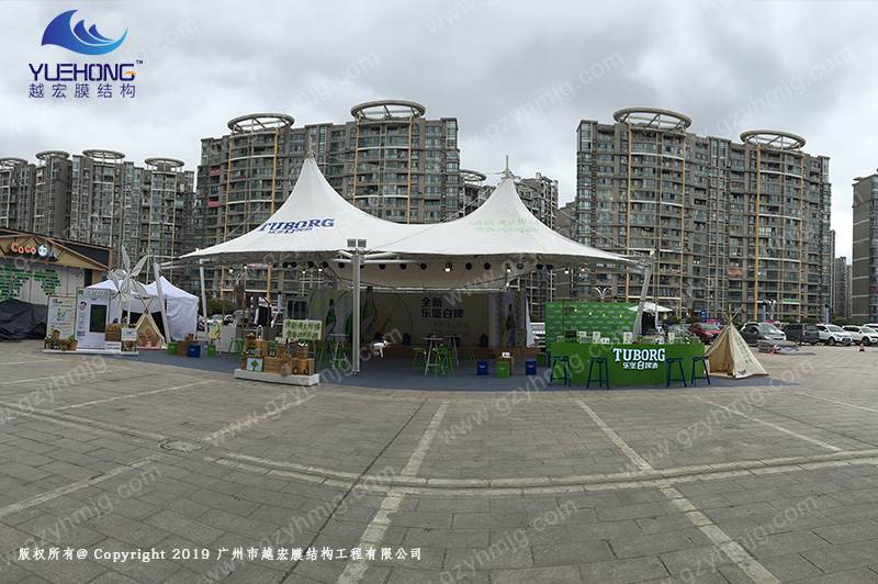 越宏膜結(jié)構(gòu)使用壽命長,并可助有自身維護(hù)措施,利用創(chuàng)新的膜結(jié)構(gòu),能促進(jìn)商家在戶外促銷活動中更有價值。