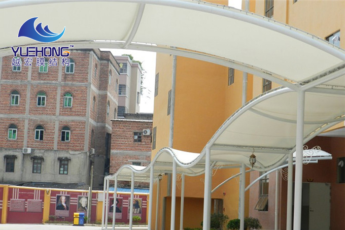 膜結(jié)構(gòu)建筑門口廊道設(shè)施服務(wù)范圍:學(xué)校門口、工廠門口、公司門口、各種建筑樓門口等等。已成為人們視覺最先接觸的部分,還應(yīng)具有了很強(qiáng)的標(biāo)識(shí)性。并且能體現(xiàn)出建筑入口的個(gè)性以及屬是屋頂經(jīng)常采用的形式。