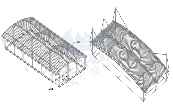 越宏膜結(jié)構(gòu)廠家的體育館籃球場膜結(jié)構(gòu)遮陽棚是由鋼結(jié)構(gòu)和膜材組成,分別有張拉式膜結(jié)構(gòu)、索膜結(jié)構(gòu)、骨架式膜結(jié)構(gòu)、空間結(jié)構(gòu)式等供選擇,根據(jù)不同場景進行設(shè)計出個性化膜結(jié)構(gòu)。